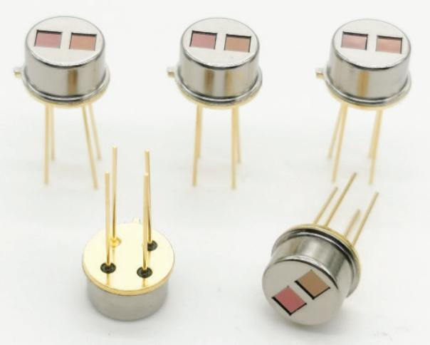 S02-CA0系列双通道热释电探测器基于钽酸锂单晶热释电效应,再配合以超低噪声电流放大电路和硅衬底窄带滤光片,保证探测器高响应率和低噪声。探测器包含两个独立的通道,均配有带热补偿的敏感元芯片,具备快速响应的优点。参考通道滤光片中心波长为3.95um,信号通道可根据目标气体红外吸收特征进行定制。该系列探测器专用于NDIR气体检测模组。
